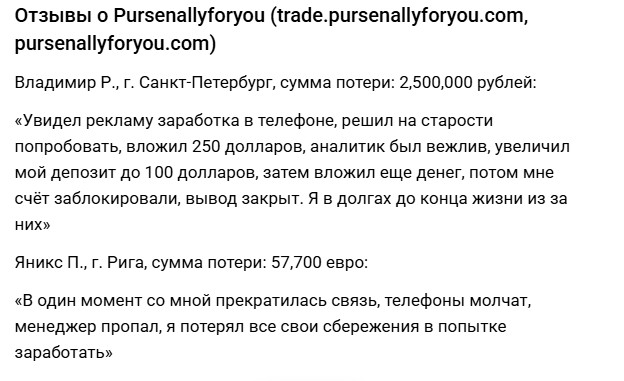 Отзывы трейдеров о работе с Pursenallyforyou