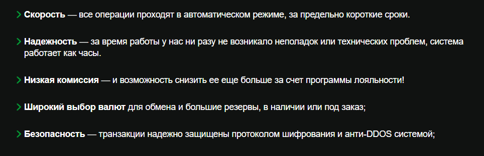 На сайте проекта нам говорится об условиях обмена и преимуществах компании. Среди них указывается оперативность сделок, выгодные курсы обмена, низкая комиссия за перевод средств в другие валюты или вывод, а также безопасность транзакций и постоянная поддержка от операторов сайта Pzmoney.