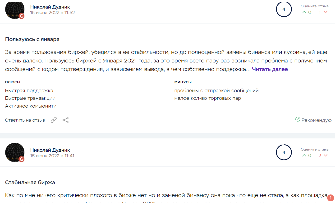 Встречаются и полноценные положительные отзывы, поэтому репутацию биржи можно назвать приемлемой, которая имеет как хорошие, так и плохие отзывы.