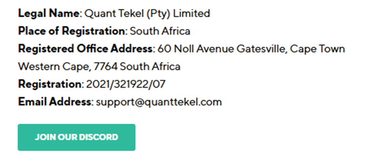 На ресурсе quanttekel com указано, что офис компании расположен в Южной Африке. Однако, при проверке через «Гугл карты» показывает, что по данному адресу находится жилой сектор. Офисов там нет.