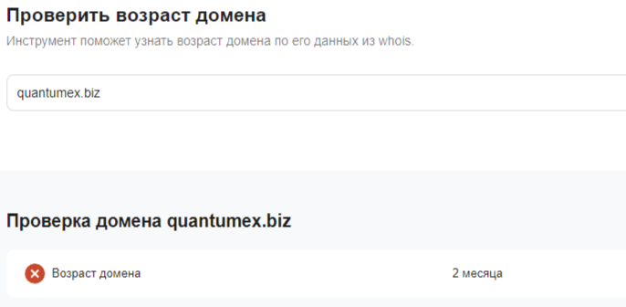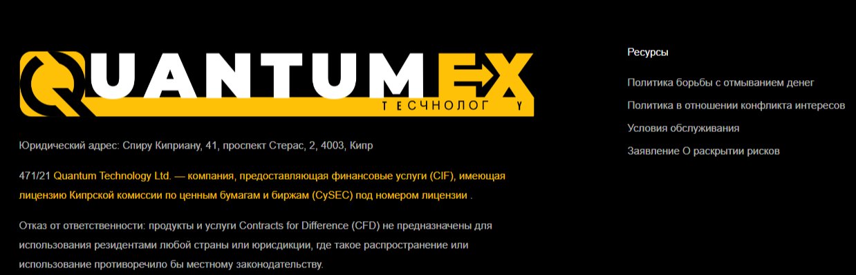 Сайт Quantum Ex брокера существует в интернете всего пару месяцев. Этот факт должен заставить трейдеров задуматься. Скромный срок существования говорит об отсутствие профессионализма и опыта у владельцев брокерского портала.