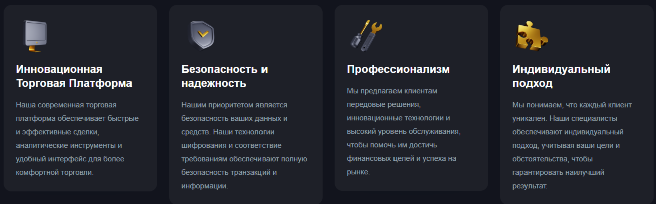 Официальный сайт молодого брокера малоинформативен. На портале размещены только преимущества компании, призывы начать работать, краткие данные о счетах, ссылка на криптоблог, который не открывается без регистрации. В футере портала представлена краткая информация о юридическом адресе организации (Спиру Киприану, 41, проспект Стерас, 2, 4003, Кипр) и лицензии. В данных не указан номер разрешения на работу и ссылка на юрисдикцию, что говорит об обмане целевой аудитории.