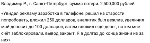 В каждом отзыве пользователи жалуются на брокера и обвиняют его в незаконном присвоении средств клиентов. Если им верить, представители компании уговаривают инвестировать. Но как только депозит перестает пополняться или пытаются вывести средства, их счет блокируют.
