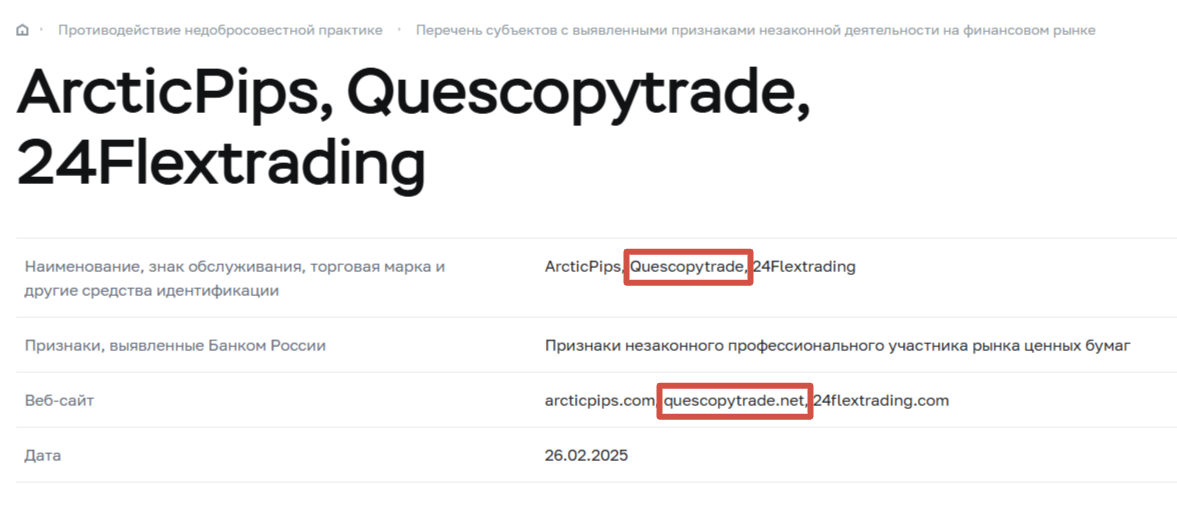 Что известно о брокере Quescopytrade Capital Ltd?