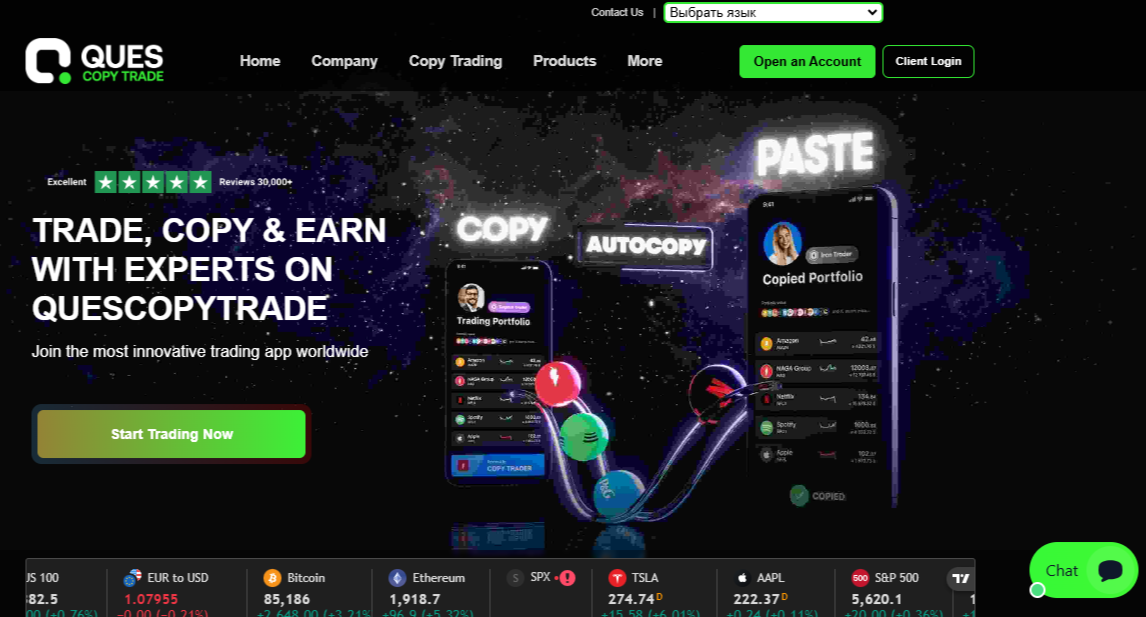 Онлайн-проект Quescopytrade Ltd позиционируется как платформа, при помощи которой можно инвестировать в любые популярные высокодоходные активы. Ее разработчики предоставляют возможность вкладывать средства в ценные бумаги, Форекс, криптовалюту и пр. Условия сотрудничества выглядят более чем привлекательными. Наша редакция решила проверить, так ли выгодно на самом деле пользоваться этим сервисом и сделала по нему собственное независимое заключение.