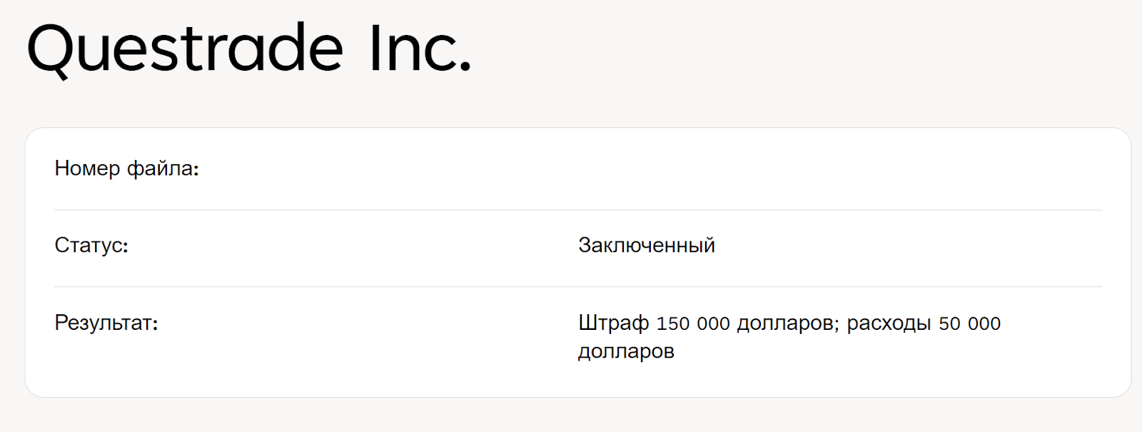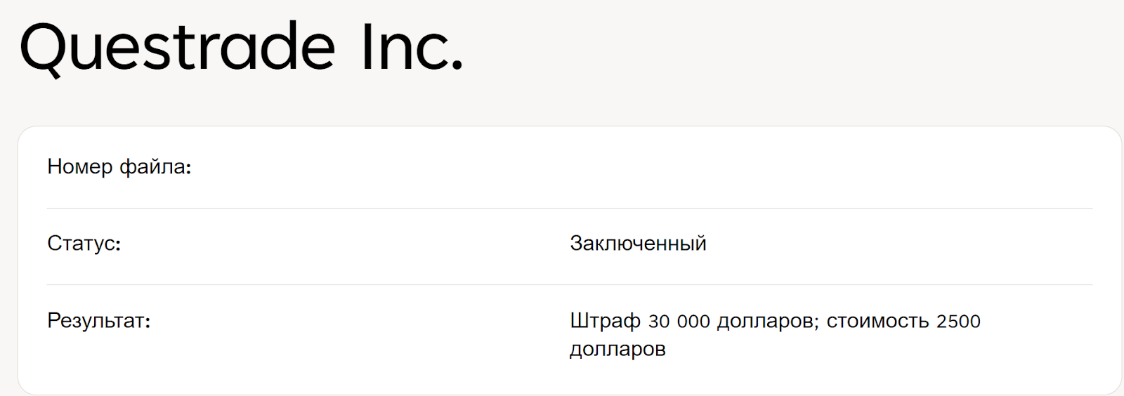- наличие записей о штрафах QuesTrade говорит о недобросовестности инвестиционного посредника, и это становится опасной практикой для любого трейдера, ведь однажды он может просто не вывести заработанные средства.