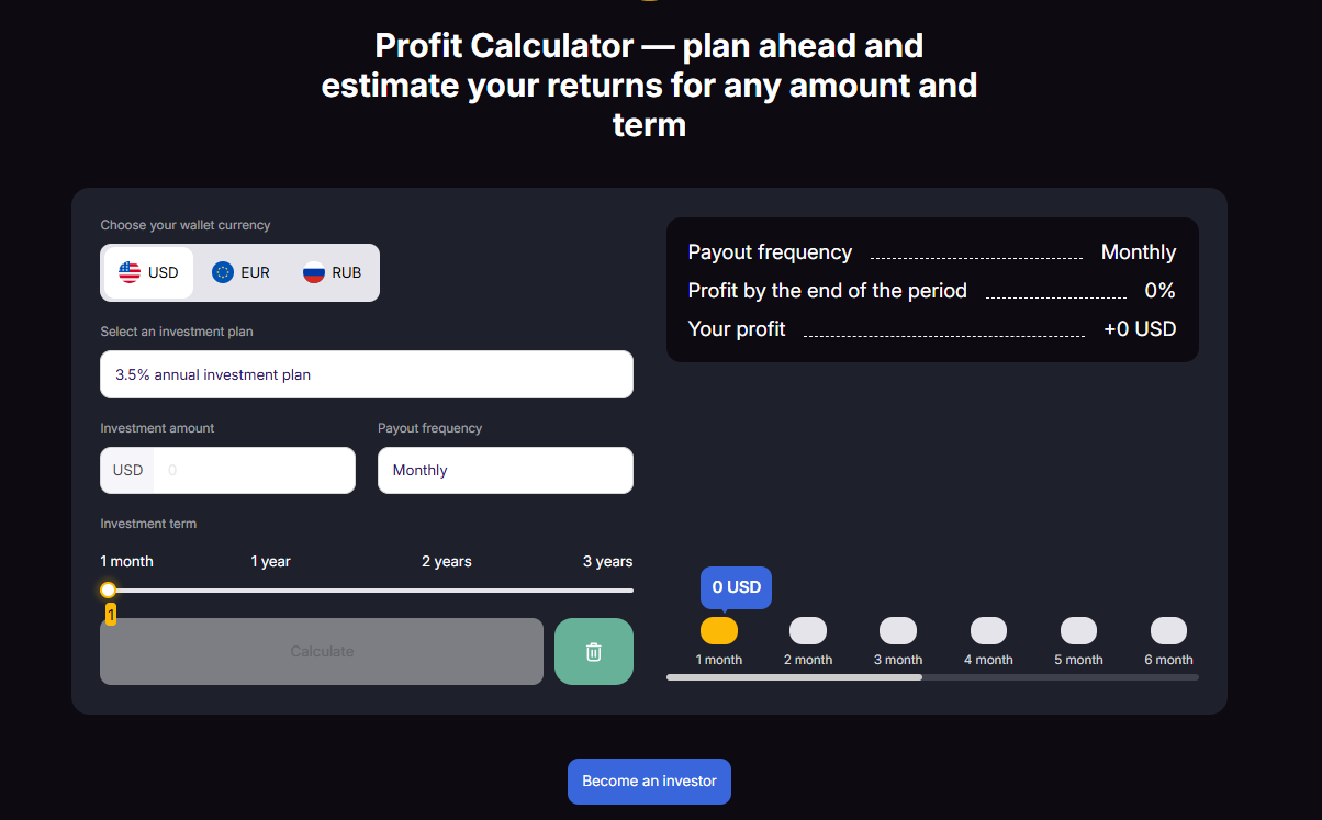 Также на сайте есть калькуляторы прибыли. Помимо стандартной пары доллар/евро он показывает данные в рублях, что странно для международного проекта.