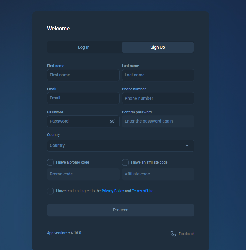 Регистрация на сайте R Lyxo Top упрощенная, достаточно ввести номер телефона и электронную почту.