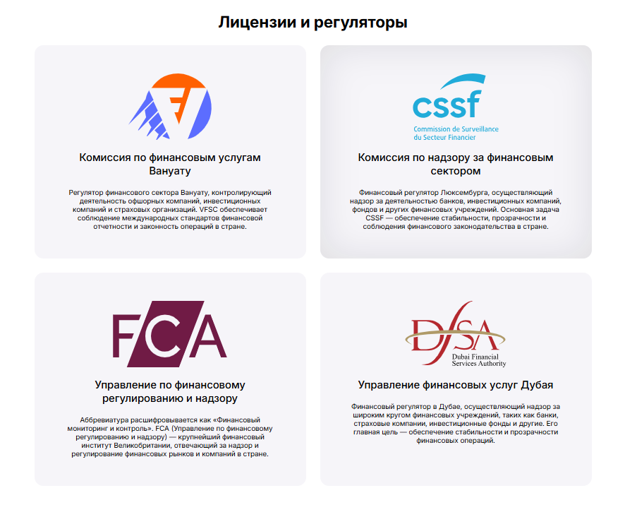 Настораживает и ситуация с лицензиями. Заявлено, что компания зарегистрирована в Великобритании, Дубае, Вануату и Люксембурге, но проверка показывает, что каждая из опубликованных лицензий на сайте R Lyxo Top ведет на фейк, а не на реальный регулирующий орган.