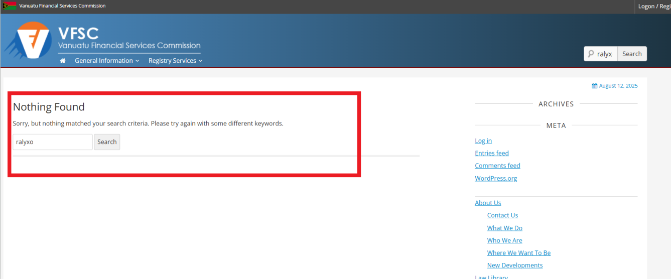Кто является создателем Раликсо, неизвестно. На платформе сказано, что у брокера есть регистрация в Швейцарии и несколько лицензий, например от Vanuatu Financial Services Commission. При этом в реестре регулятора упоминаний о компании нет.