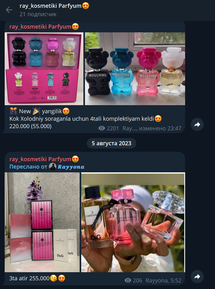 Канал Ray_Kosmetiki Parfyum входит в целую сеть различных магазинов, где даже предлагают технику в группе с ником Raay_Home. По словам автора, он лично отбирает композиции и занимается их адаптацией, чтобы предложить подписчикам стойкие и качественные копии известных запахов или собственные эксклюзивные варианты.