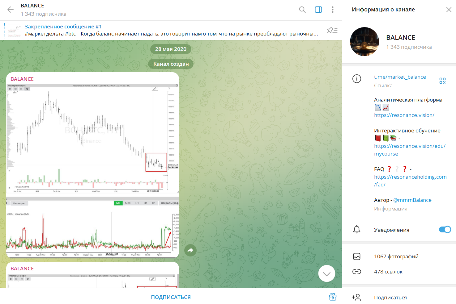 У программы для трейдеров есть канал в Телеграмм Market Balance и аккаунт в Твиттер resonancehldg. Блог в Telegram работает с 2020 года и посвящен аналитике финансовых рынков. Автором постов является некий mmmBalance.На сайте проекта и на канале в Телеграмм предлагается курс от Resonance Vision по трейдингу. Указано, что обучение прошли более 20 тысяч человек. Кто преподает курс непонятно, поэтому оценить его реальную полезность невозможно.