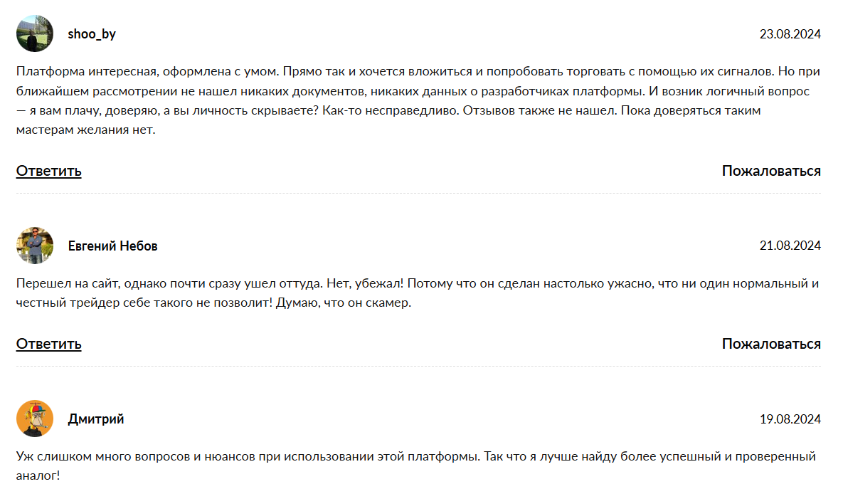 - Негативные отзывы говорят о том, что у проекта отрицательная репутация среди трейдеров и инвесторов.
