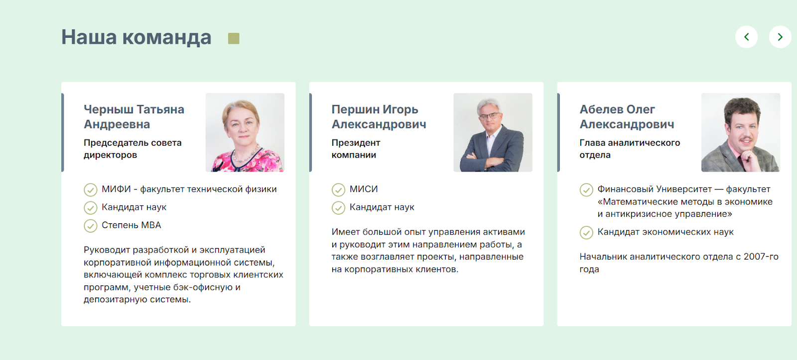 В качестве руководителей указаны опытные экономисты. Большинство из них имеют высшее профессиональное образование.