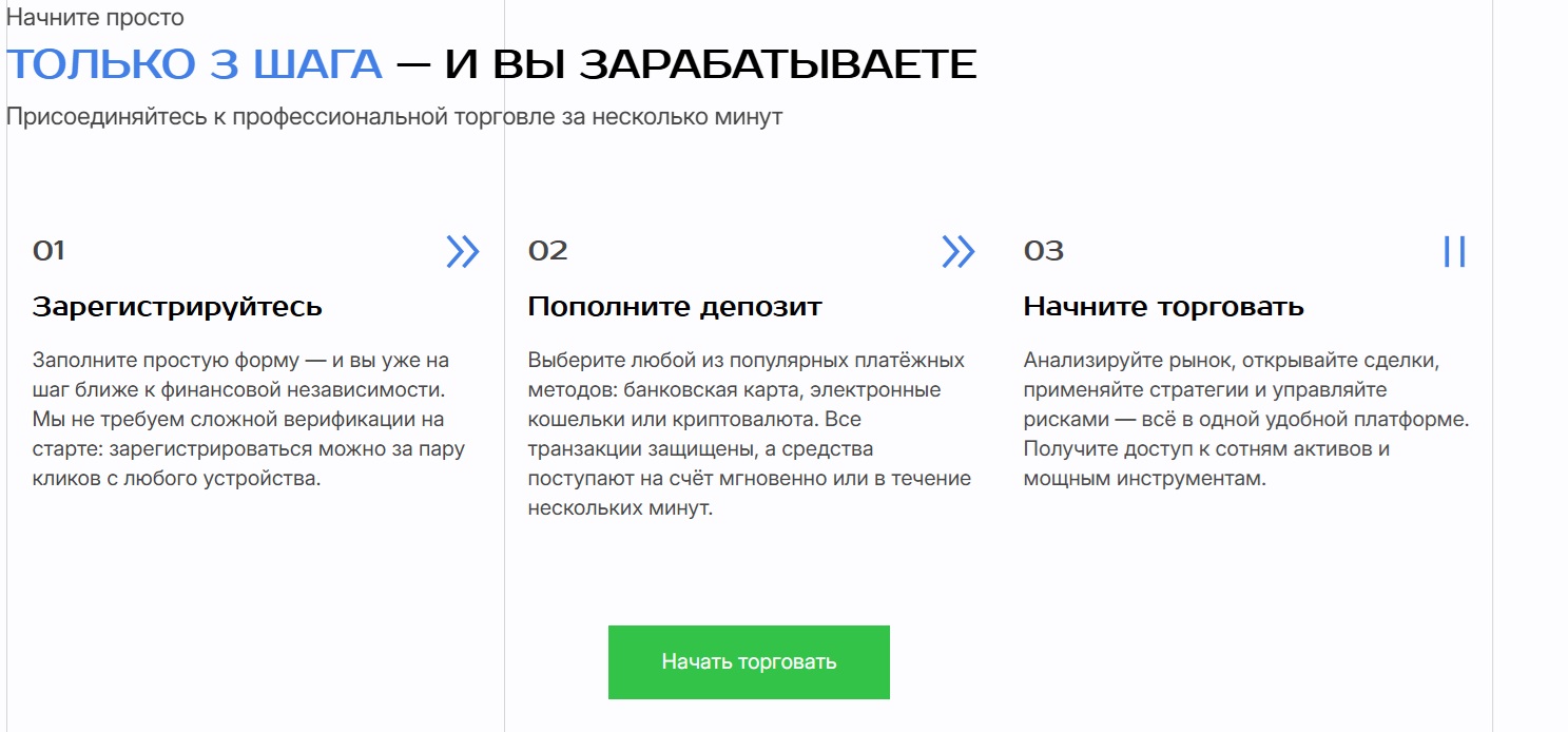 Но конкретики по успехам и достижениям нет. На сайте не видно данных о количестве клиентов, объемах торгов или истории выплат. Вся информация подается общими фразами, без цифр и реальных подтверждений.