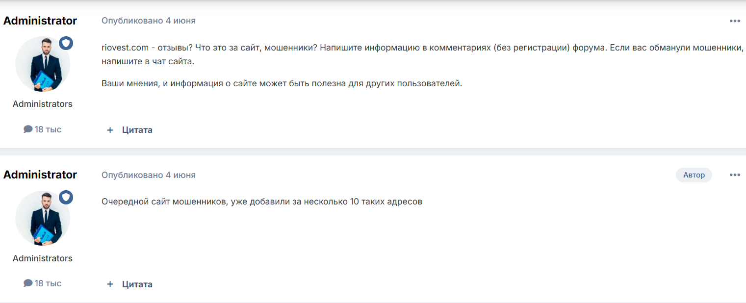 В социальных сетях, например на Ютуб, еще не появились отзывы о Riovest. Но на форумах и тематических порталах в Сети легко найти уже негативные слова критики, где юзеры говорят, что это сайт мошенников и они регулярно создают аналогичные фейковые ресурсы.