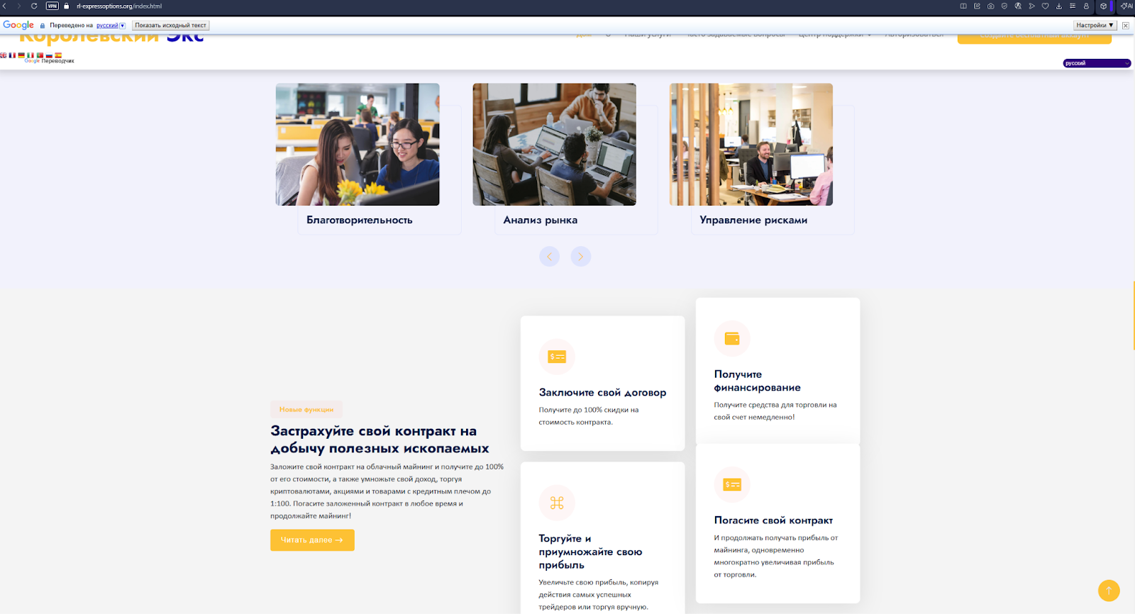 Мы не рекомендуем сотрудничать с Royal Express Options или подобными ей инвестиционными платформами. Если хотите заняться трейдингом, лучше выбрать лицензированную биржу или проверенного брокера с положительной репутацией.