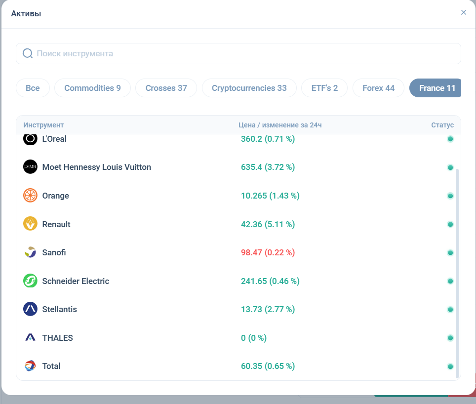 В перечне активов, которыми можно торговать на бирже, указано всего 136 финансовых инструментов, что слишком мало даже для мелкого брокера.