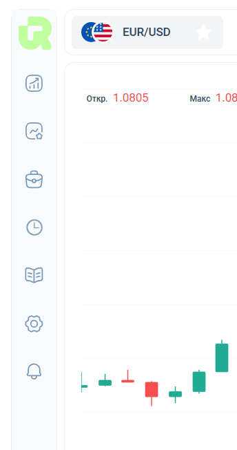 Зарегистрировав свой торговый счет, мы попадаем на страницу с графиком валютной пары евро/доллар. Сам график вызывает множество вопросов.