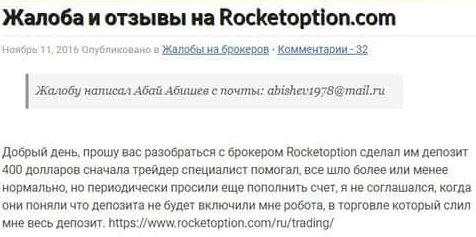 Отзывы о брокере Рокет Опцион от реальных клиентов