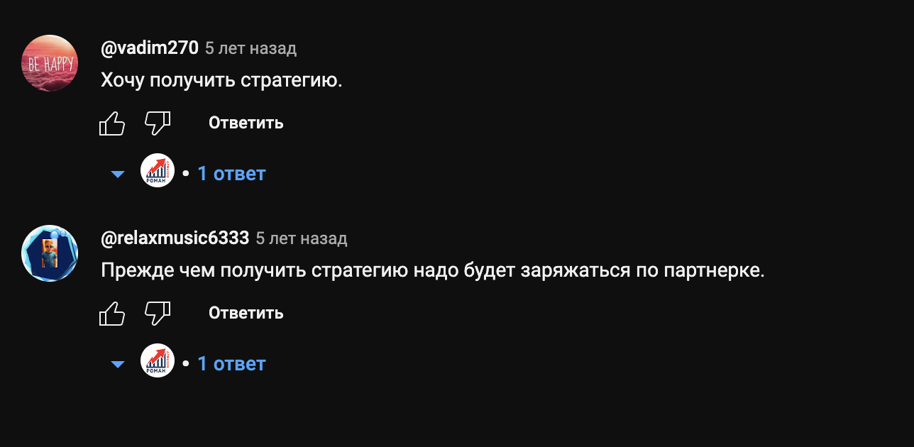 У робота Романа Алмазова отзывы негативные. Даже на его Ютуб-канале много негатива. Отчасти — относительно того, что автор продвигает исключительно партнерские ссылки, а не себя и свой опыт.