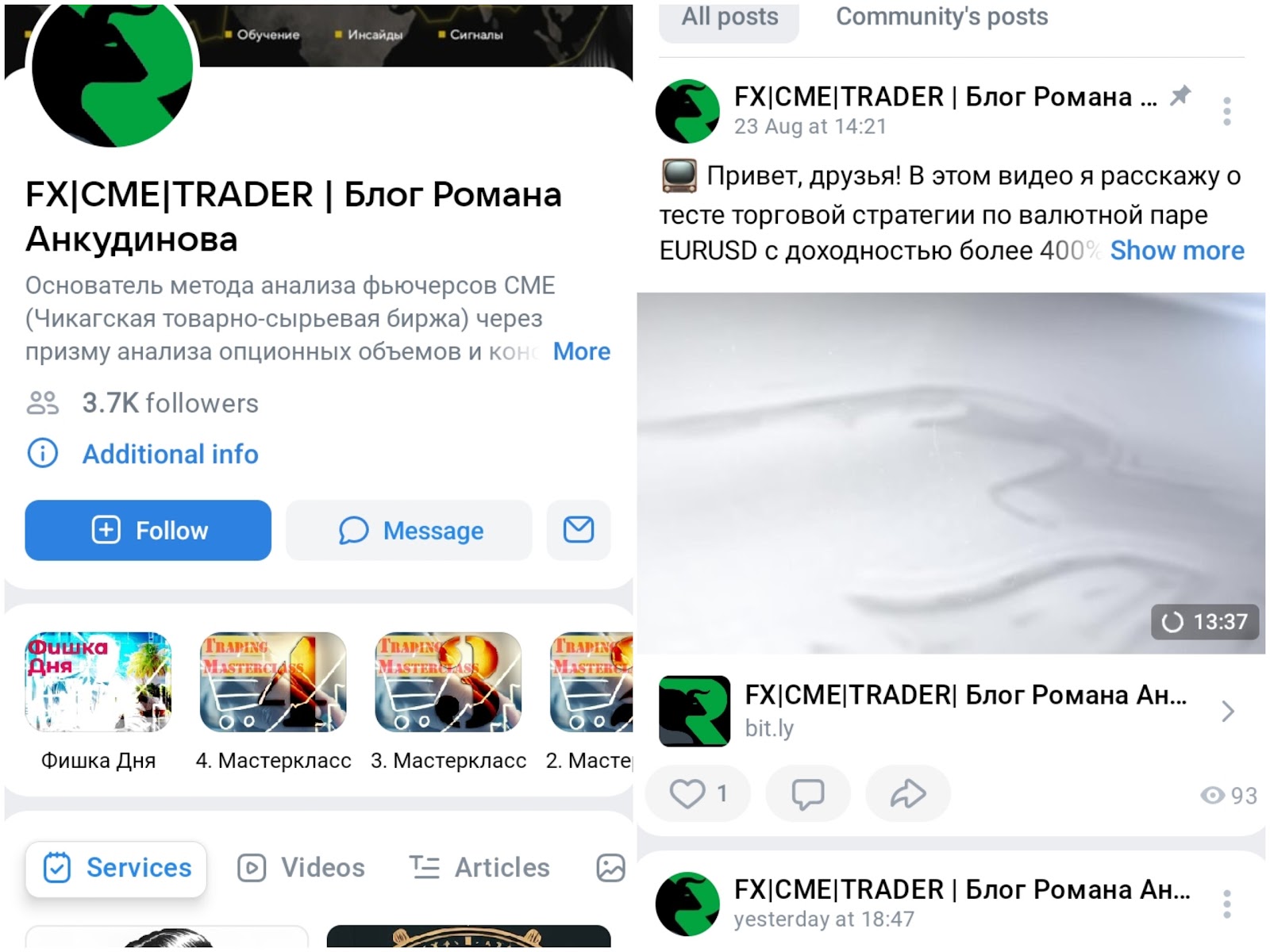 Ознакомиться с курсами и клубом трейдера можно с помощью Телеграмма. В отдельных постах админ предоставляет ссылки на ресурсы с информацией об услугах. Сейчас трейдер Роман Анкудинов предлагает пользователям: