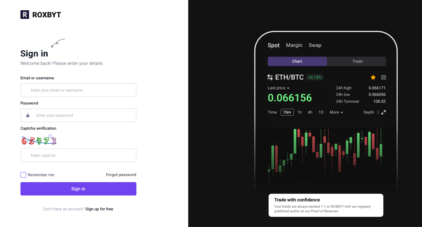На сайте платформы сказано, что Roxbyt — биржа мирового уровня с огромной аудиторией и внушительными резервами. Ее представляют как торговую площадку для покупки, продажи и хранения криптоактивов через защищенную систему.