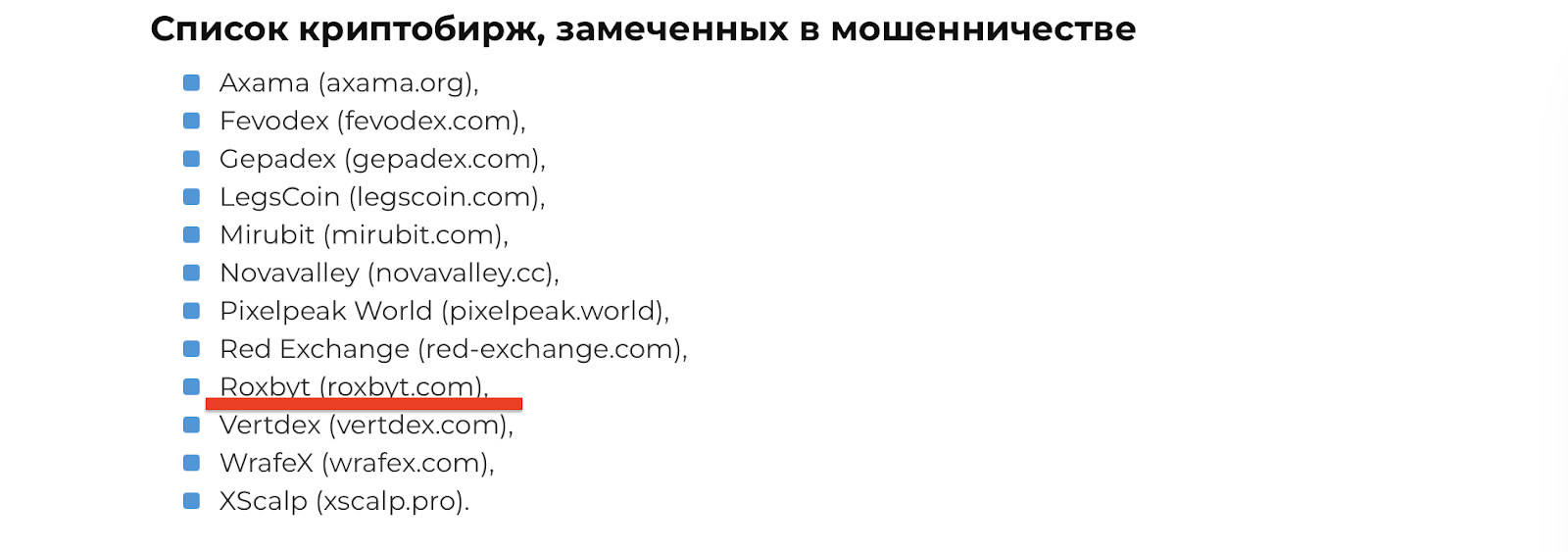 Признаки скама на платформе Roxbyt