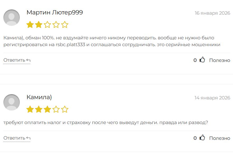 Оставьте Ваш отзыв о работе с Rsbc Platt333
