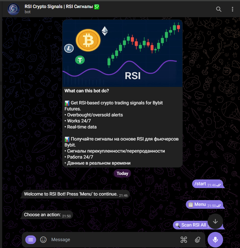 сигнальный телеграм бот криптовалюты по индикатору rsi