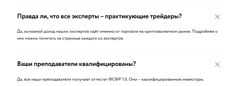В отзывах о крипто-трейдере Руслане Амирове пользователи не задают вопросы о квалификации и практических навыках преподавателей, однако на сайте онлайн-школы создатели пишут, что у каждого есть аттестат ФСФР 1.0.