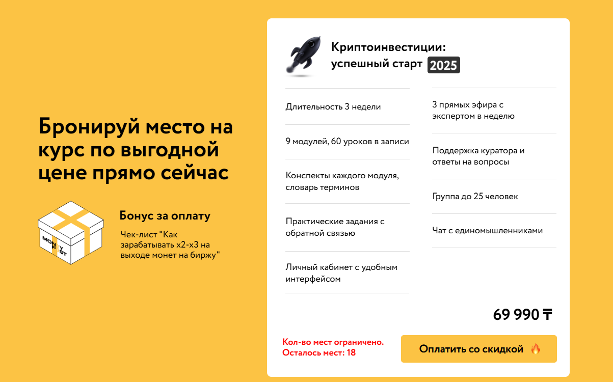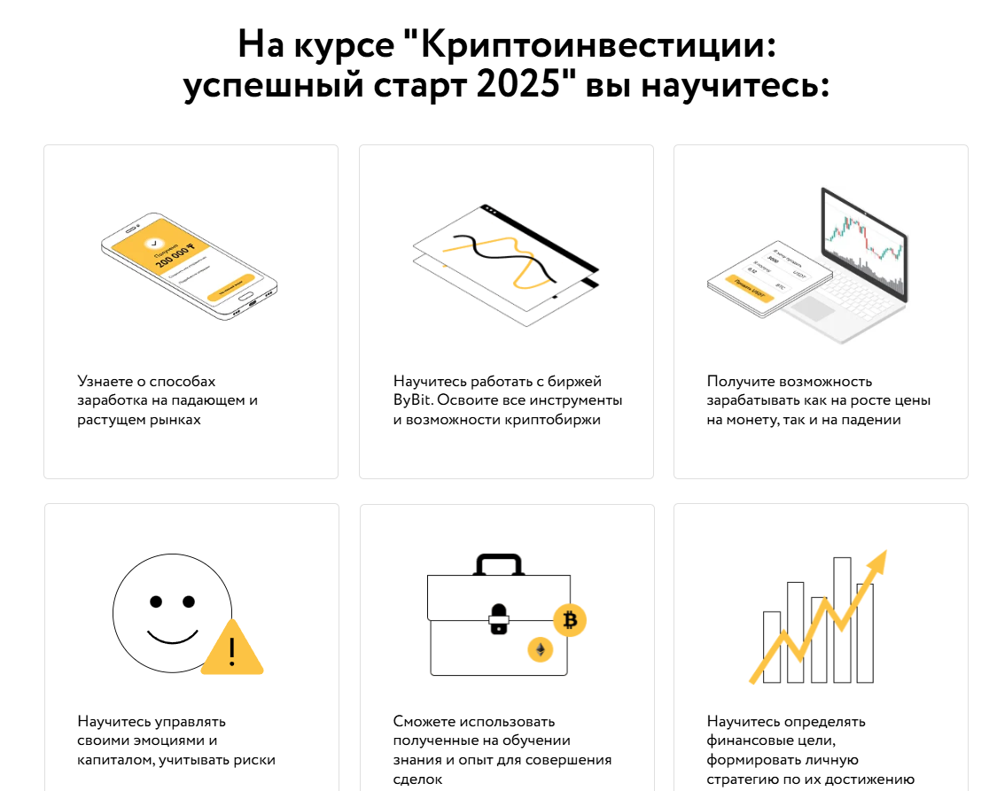 У эксперта есть платный курс «Криптоинвестиции: успешный старт 2025», где он предлагает способы, как можно заработать на сделках через биржу Bubit, получить прибыль от криптовалют.