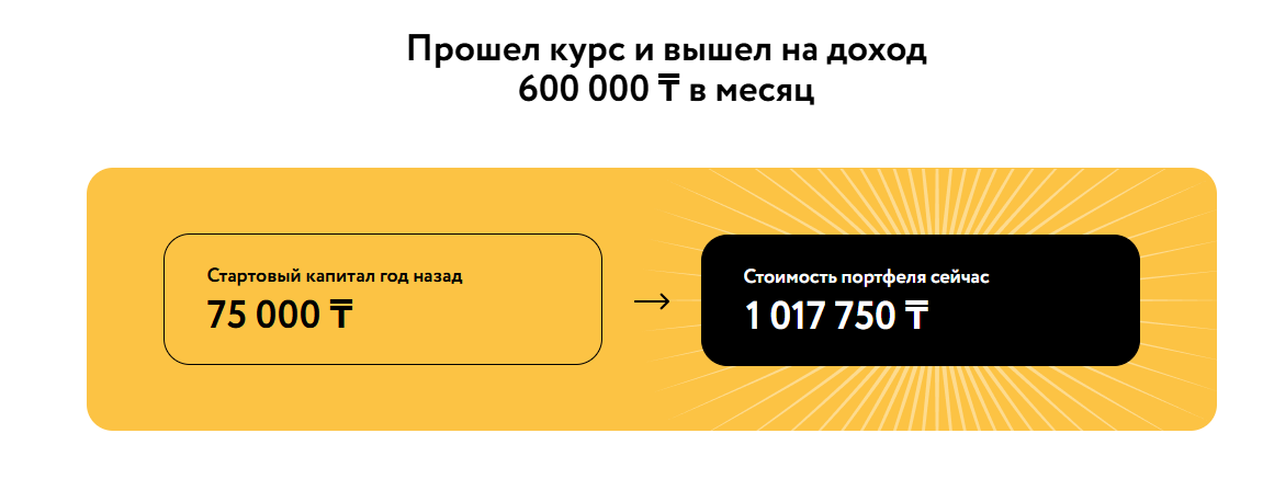 Ученикам, которые согласились внести оплату за курс, обещают прибыль в плюс 600 000 тенге со стартовых 75 000 тенге