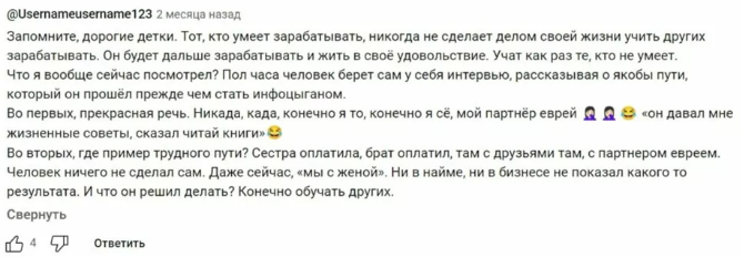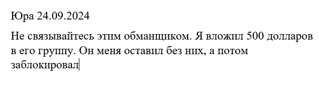 В интернете можно встретить отрицательные отзывы об этом человеке. Люди пишут, что вложились в его закрытую группу. Он обманул их, заблокировав в канале «Самурае» мессенджера Telegram и не возвратив деньги на кошелек.
