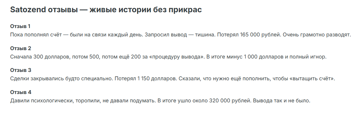 Отзывы трейдеров о работе с Satozend