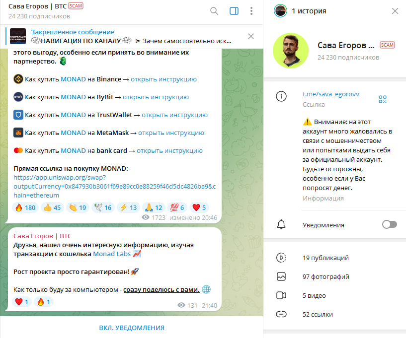 Сава Егоров — трейдер, который ведет свою основную деятельность в Телеграмм. Он ежедневно публикует торговые сигналы, статистики сделок и гайды по тому, как торговать на финансовом рынке и пользоваться биржами. Но весьма настораживает то, что проект данного трейдера был признан скамом самим Телеграммом. В этом обзоре мы разберем его и выясним, реально ли он опасен.