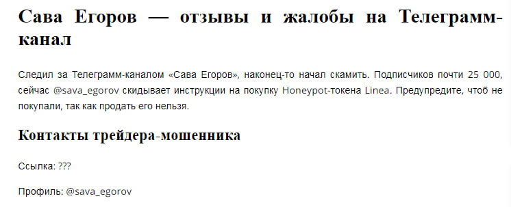 Но на трейдера можно найти негативные обзоры, в которых утверждается, что Сава Егоров — мошенник