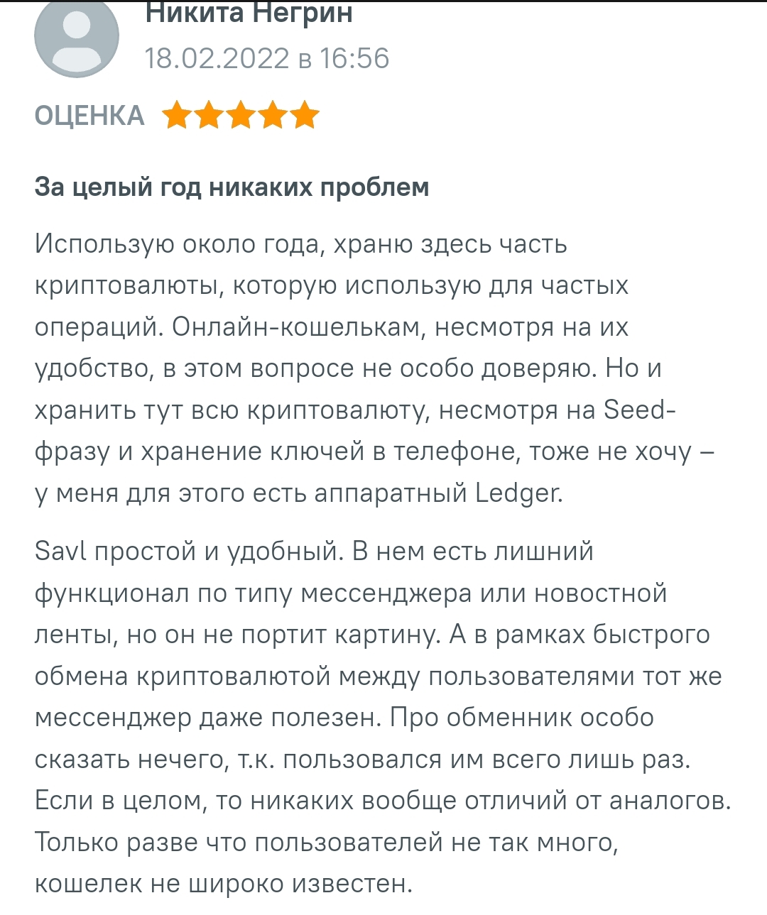 Однако все эти отзывы оставлены именно на криптокошелек Savl, а не на неизвестный проект UnityWallet на который нет рецензий.