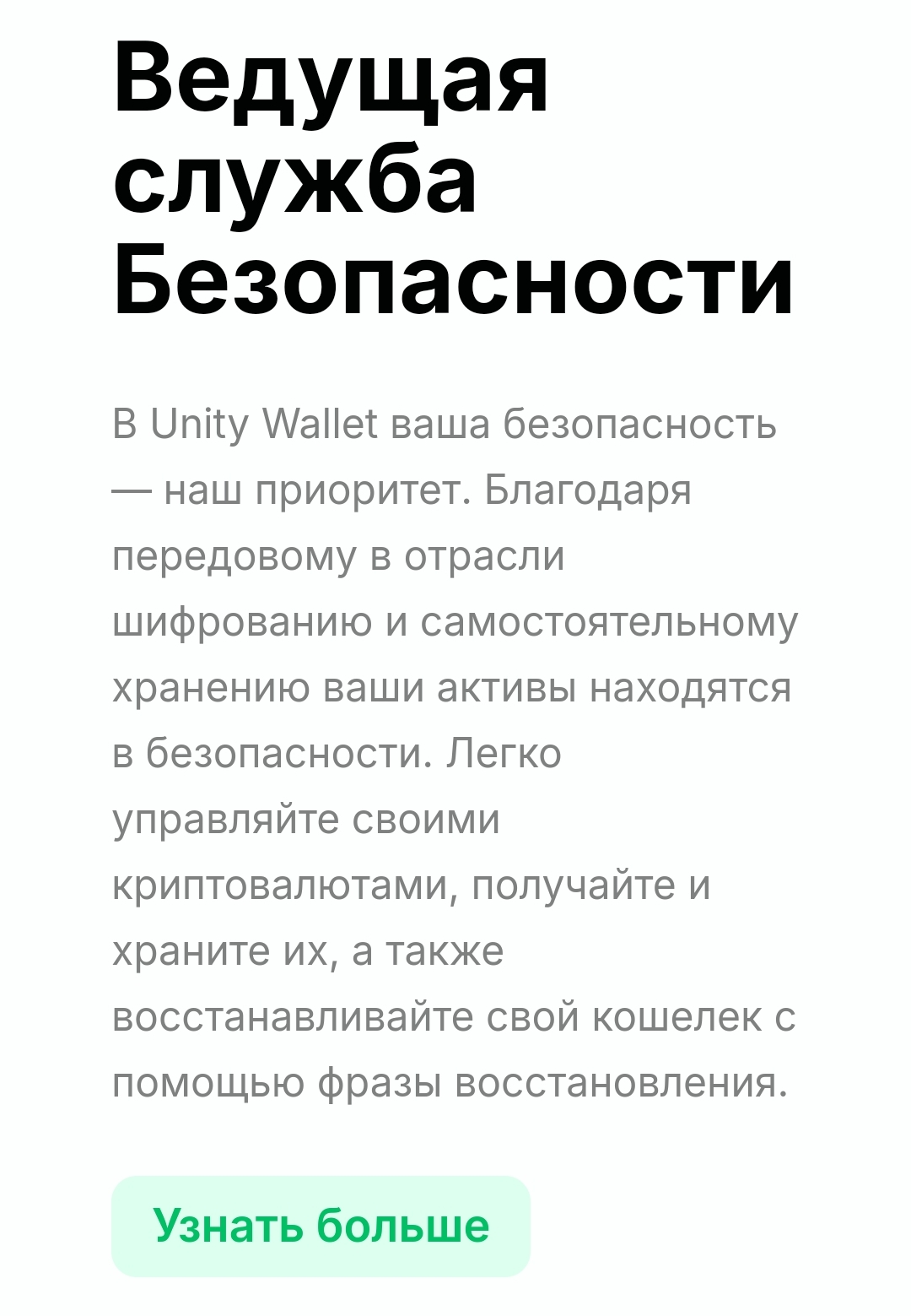 Странным является то, что ссылка при переходе на сайт менятся на Unitywallet com, где авторы проекта перечисляют преимущества: