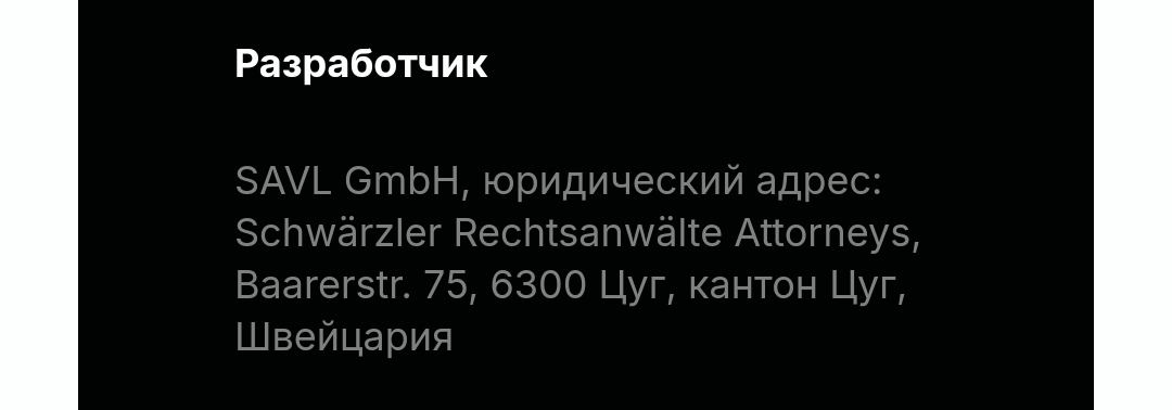 Разработчики исходного проекта имеют юридический адрес в Швейцарии, Кантон Цуг, а сайт, по имени оригинала, должен был называться Savl OÜ com, а не Unity Wallet com