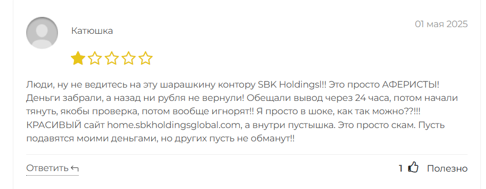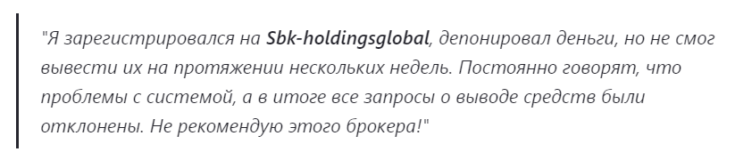 Отзывы о брокере SBK HoldingsGlobal от реальных пользователей