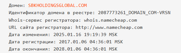- SBK Holdings Global на своем сайте не указывает никакой информации о себе, соответственно, неизвестно существует ли вообще такая компания.