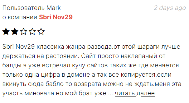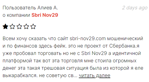 Обзор проекта Sbri Nov29 R com: что предлагает брокер, какие условия реализованы на сайте конторы, что пишут в отзывах о «Сбри Нов29» реальные инвесторы, можно ли заработать прибыль с посредником