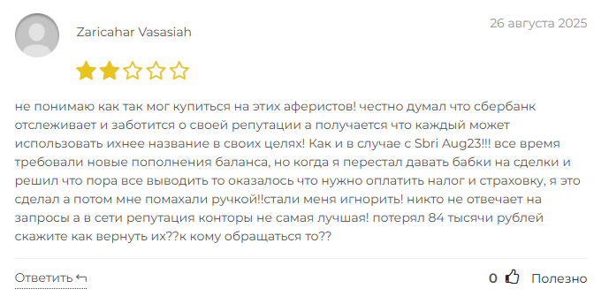 Многие инвесторы отмечают, что Sbri Sep23 — это не первый проект команды мошенников. Под разными названиями они уже запускали сайты-однодневки с аналогичными условиями, например, Sbri Aug23.