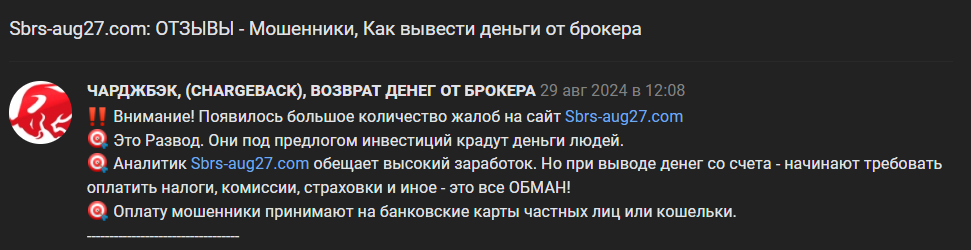 Обзор брокера sbrs aug27 com: отзывы реальных клиентов о мошеннике, анализ схемы обмана