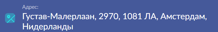 В контактах можно найти адрес по улице Густав-Малерлаан 2970, 1081ЛА в Амстердаме.
