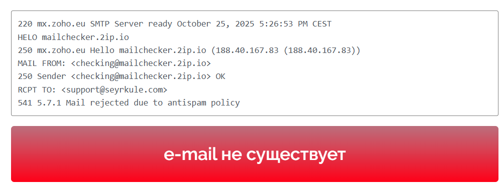 Проведенная нами проверка показала, что такого электронного адреса нет, то есть написать и обратиться за помощью по указанному адресу не выйдет.