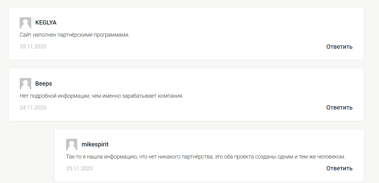 - Отзывы о проекте противоречивы и описывают разные направления работы, но ни один не подтверждает его надежность.