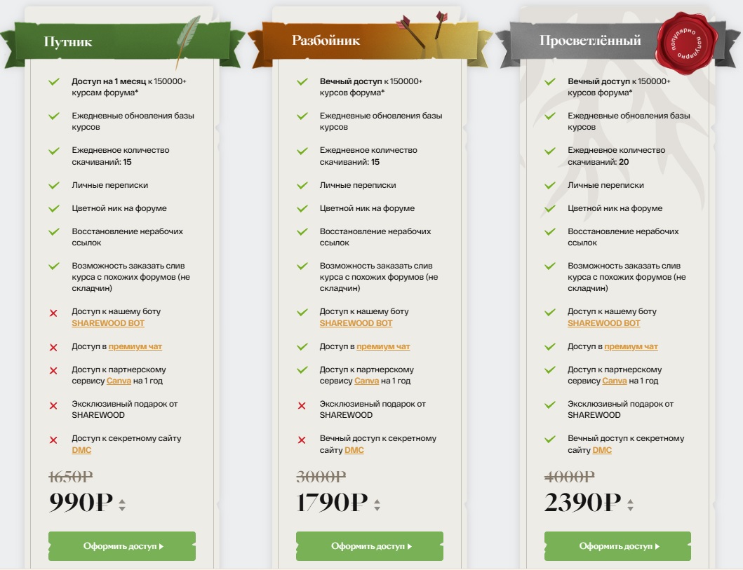 • «Просветленный» – вечный доступ за ₽2,390 плюс до 20 скачиваний в день, подарок и ссылка на секретный сайт.