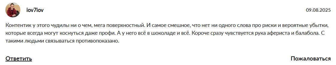 Контент на канале Алекса называют поверхностным, при этом автор ничего не говорит про риски и убытки из-за чего его подозревают в мошенничестве и обмане людей.